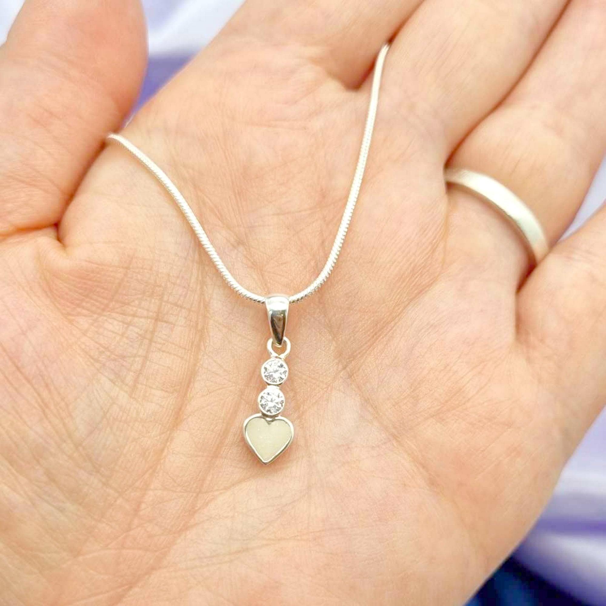 Breast milk jewellery, breastmilk heart pendant necklace and earrings set. The perfect new mum gift for mothers day.