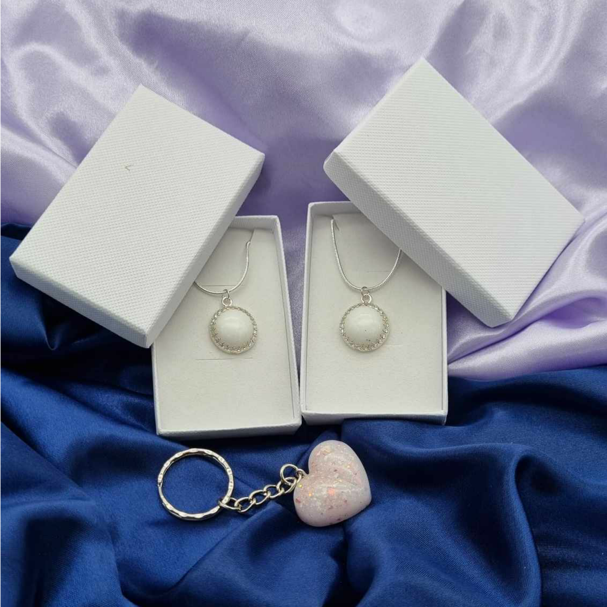 This resin heart keychain is made incorporating breastmilk with a choice of gold, silver or copper leaf, or a selection of subtle opal glitters. A beautiful way to commemorate your breastfeeding journey.