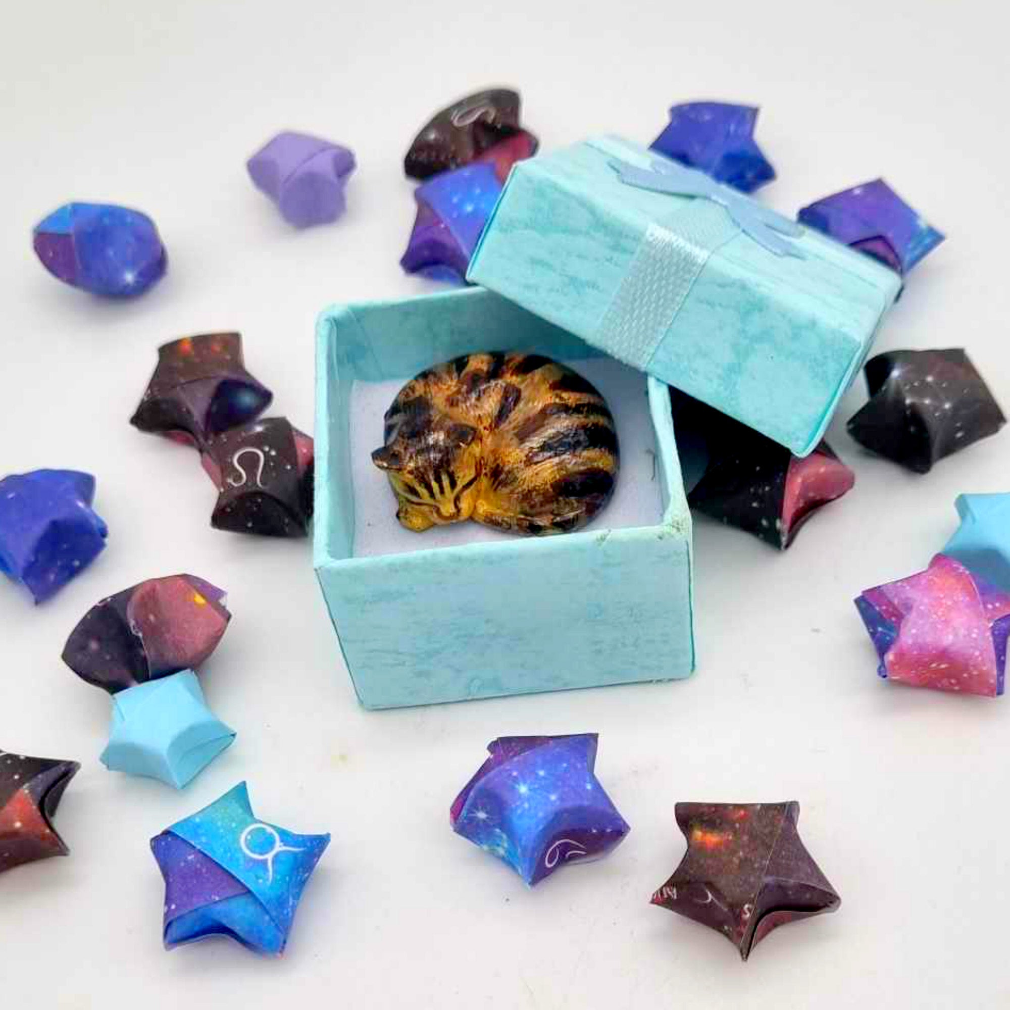 Sometimes air bubbles are unavoidable due to the resin curing process. I carry out all measures to minimise them, but sometimes they are not visible until demoulding has taken place. Please see any imperfections such as this as unique personality traits, and not defects.